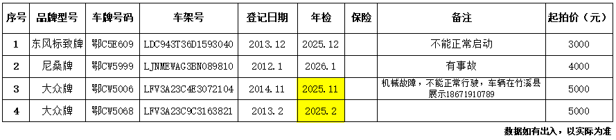 四、特別提醒:拍賣車輛不含車牌號碼,以現(xiàn)狀拍賣現(xiàn)狀交付。