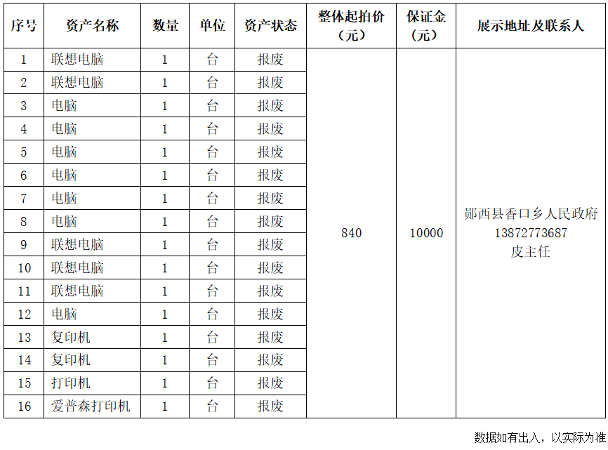 1.湖北省十堰市鄖西縣香口鄉(xiāng)人民政府報(bào)廢資產(chǎn):