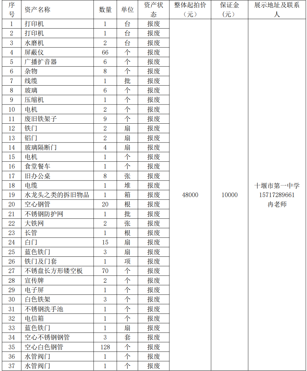 1.?湖北省十堰市第一中學(xué)報(bào)廢資產(chǎn):