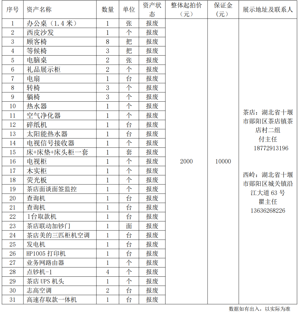 2.湖北省十堰市鄖縣農(nóng)村商業(yè)銀行股份有限公司報(bào)廢資產(chǎn):